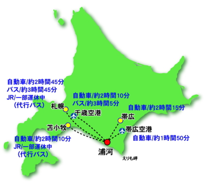 宿泊場所が静内・様似等になった場合の移動手段として、下記公共交通機関が利用できます。